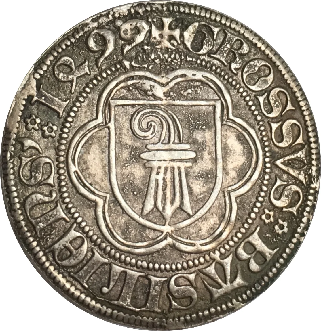 Shielded arms in a sexfoil.