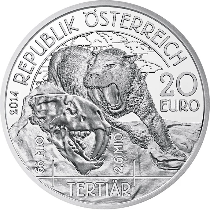 A saber-toothed cat skull, with a timeline from 66 to 2.6 million years ago.