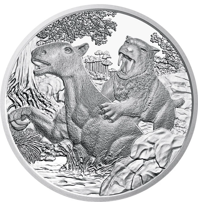 A sabre-toothed cat attacks a startled Chalicotherium.