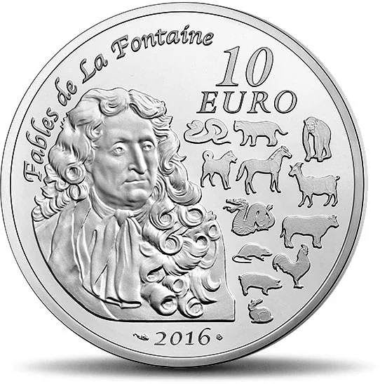 Portrait of Jean de la Fontaine and all animals of the Chinese zodiac.