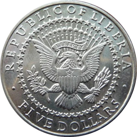 Modified U.S. presidential seal (LIBERTY replaces motto, star added atop shield) within REPUBLIC OF LIBERIA above and denomination below.