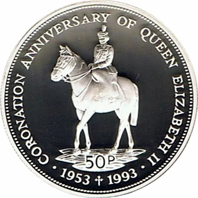 Queen Elizabeth II on horseback, value below.
