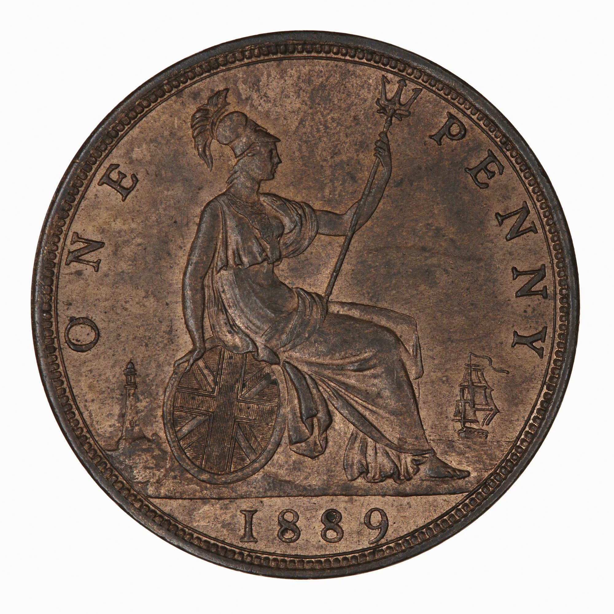Second laureate portrait of Queen Victoria facing left, with surrounding legend. Varieties exist.