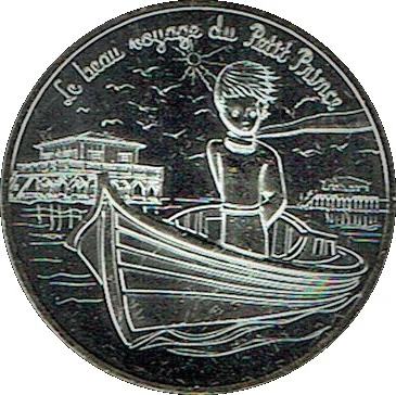 The Little Prince sails a Gascon pinasse, with Arcachon's stilt houses behind.