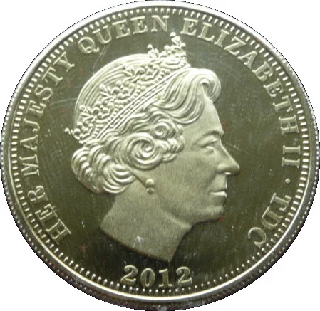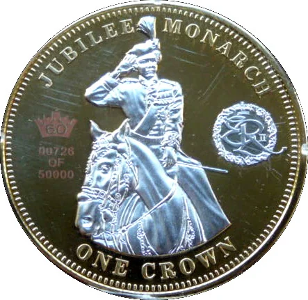 Rhodium-platinum portrait of Queen Elizabeth on horseback, saluting.