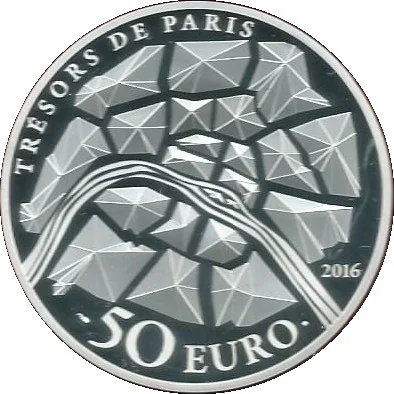 The reverse depicts a modern map of Paris with its districts as small pyramids.