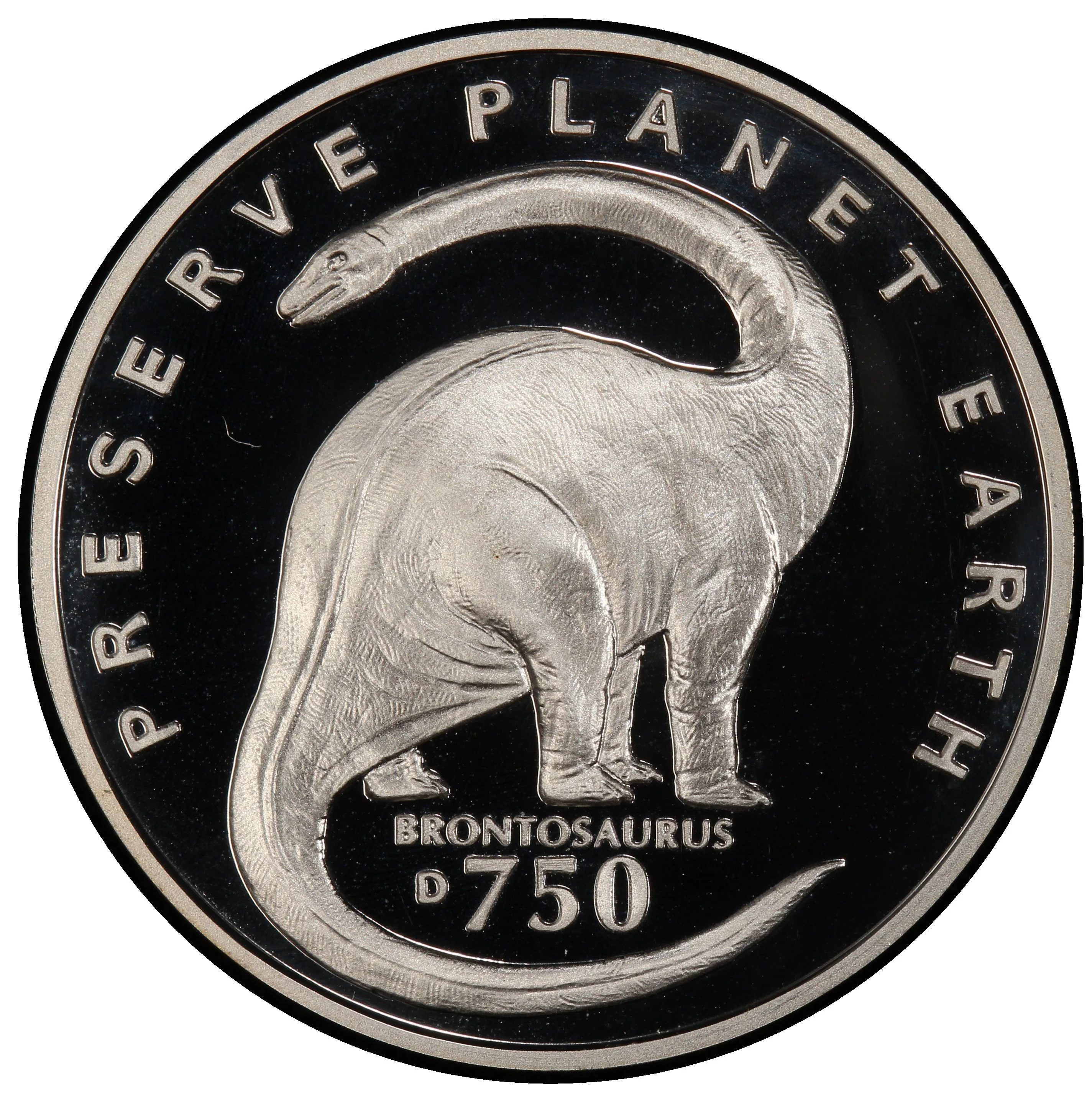 Brontosaurus facing backward, leftward, name below.