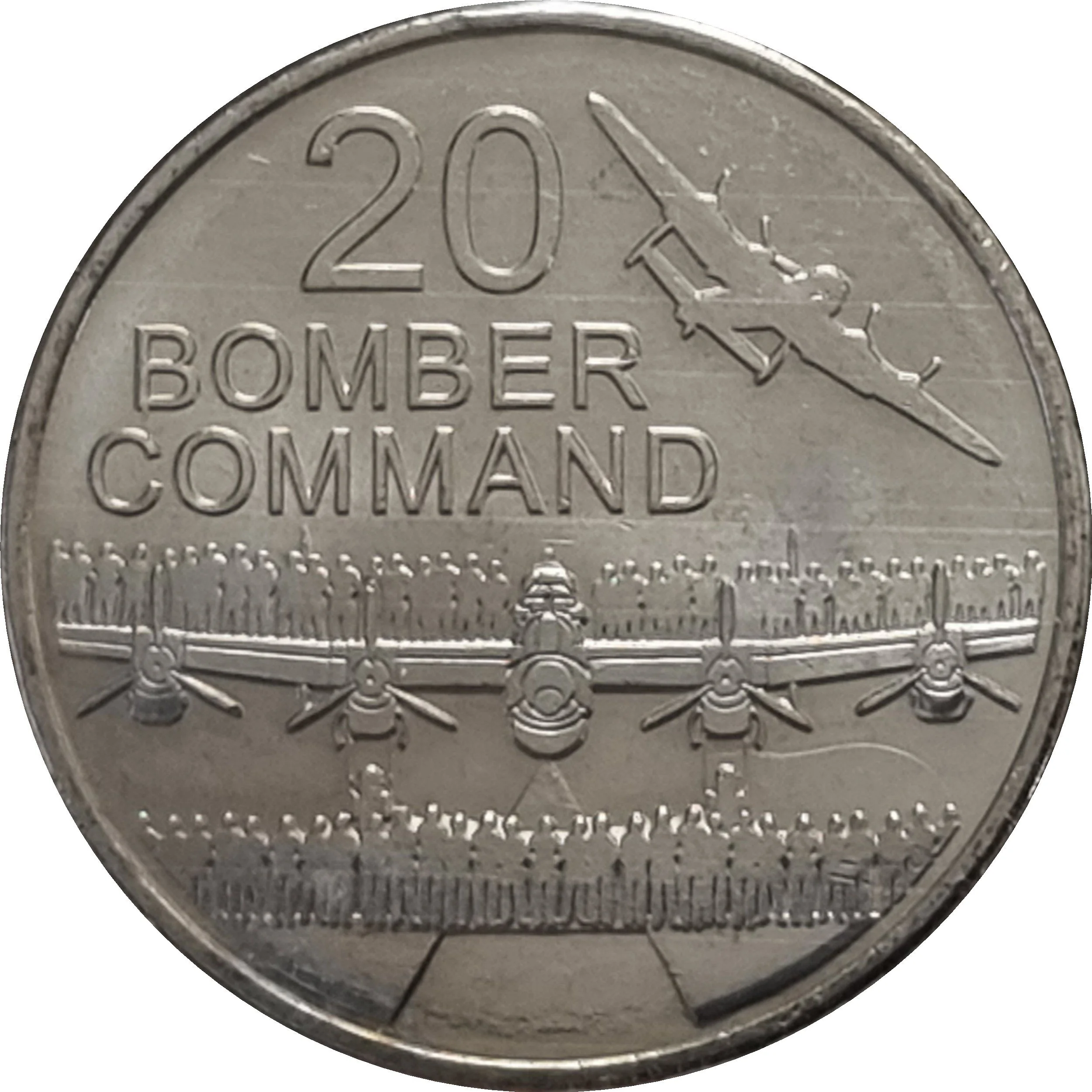 Lancaster Bomber on the ground with crew on its wings, while another Lancaster banks overhead.