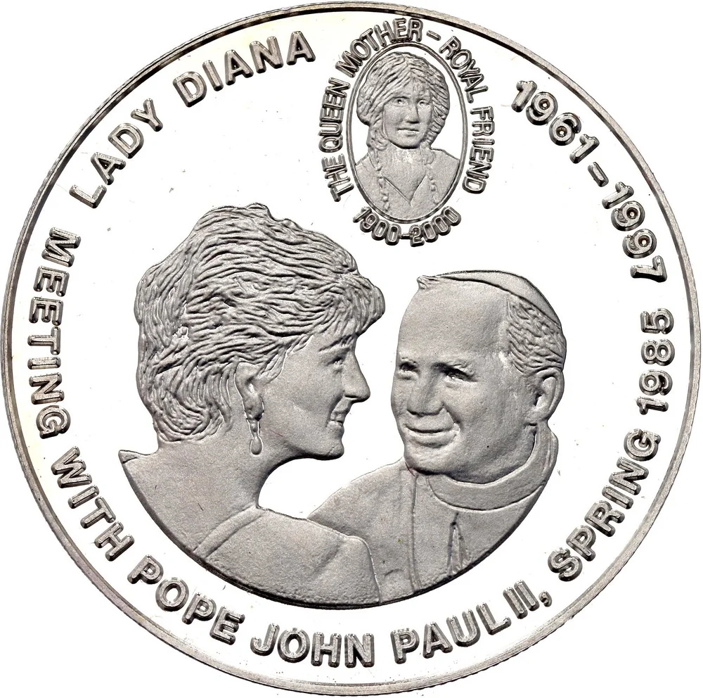 Diana left, Pope John Paul II facing left, Queen Mother cameo top center.