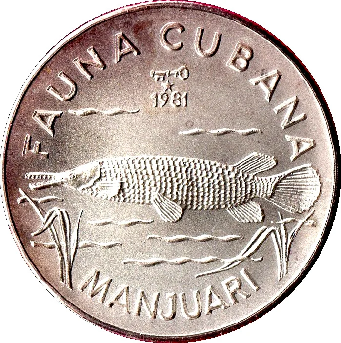 Giant Gar Fish (Manjuari). Date and mintmark above. Circular legends: series above, animal name below.