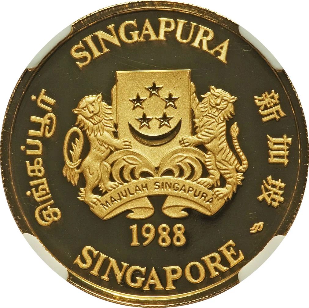 Emblem with date; 'Singapore' encircles it in English, Tamil, Chinese, and Malay.