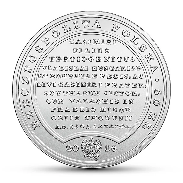 CASIMIRI FILIUS TERTIOGENITUS VLADISLAI HUNGARIAE ET BOHEMIAE REGIS, AC DIVI CASIMIRI F RATER, SCYTHARUM VICTOR, CUM VALACHIS IN PRAELIO MINOR OBIIT THORUNII