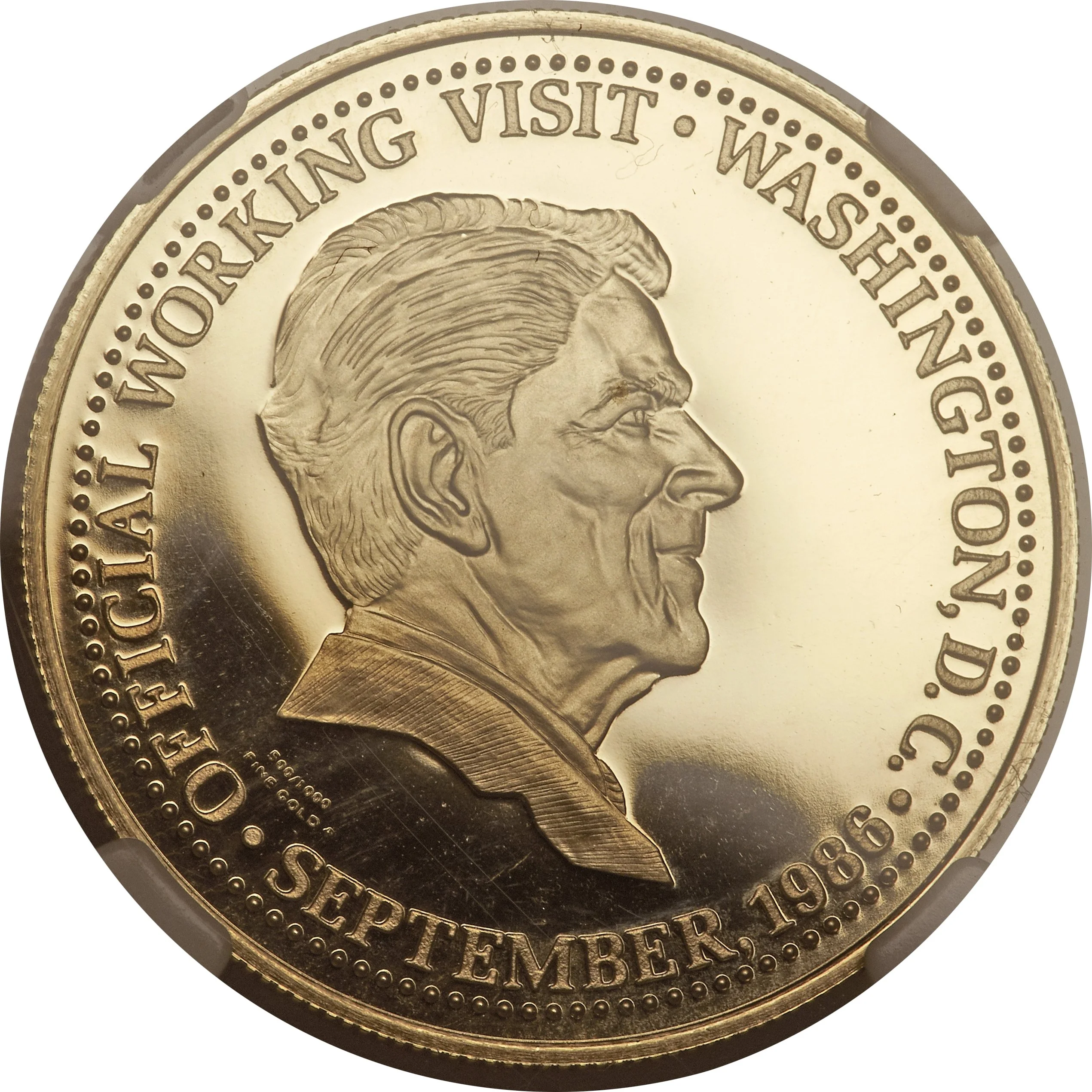 Bust of Ronald Reagan facing right.