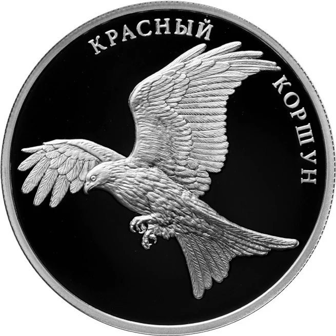 A red kite in relief soars above the disc. Around the rim: "КРАСНЫЙ КОРШУН" (RED KITE).