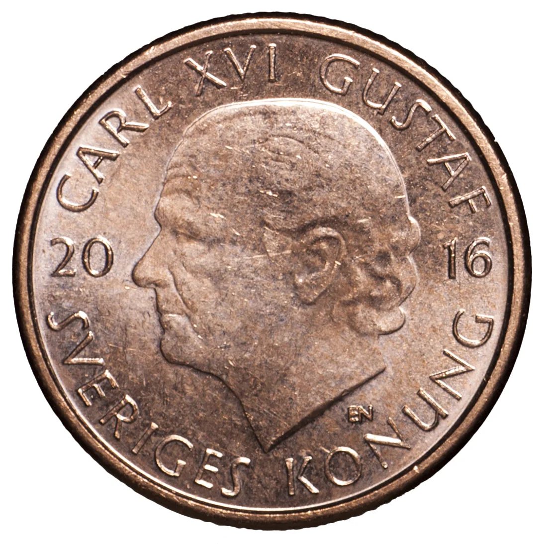 King Carl XVI Gustaf left profile beside date.