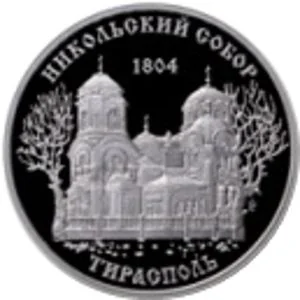 Central image: the monastery. Above it, the year "1804" in a circle. At the top, the inscription: «НИКОЛЬСКИЙ СОБОР ТИРАСПОЛЬ».