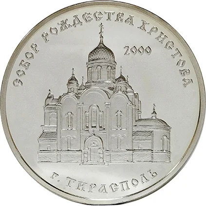 Description: The Cathedral of Christmas in Tiraspol, with "2000" above it. Cyrillic inscriptions circle the top ("СОБОР РОЖДЕСТВА ХРИСТОВА") and bottom ("ТИРАСПОЛЬ").