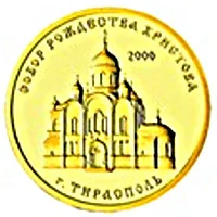 Description: The Cathedral of Christmas in Tiraspol, with "2000" above it. Cyrillic inscriptions circle the top ("СОБОР РОЖДЕСТВА ХРИСТОВА") and bottom ("ТИРАСПОЛЬ").