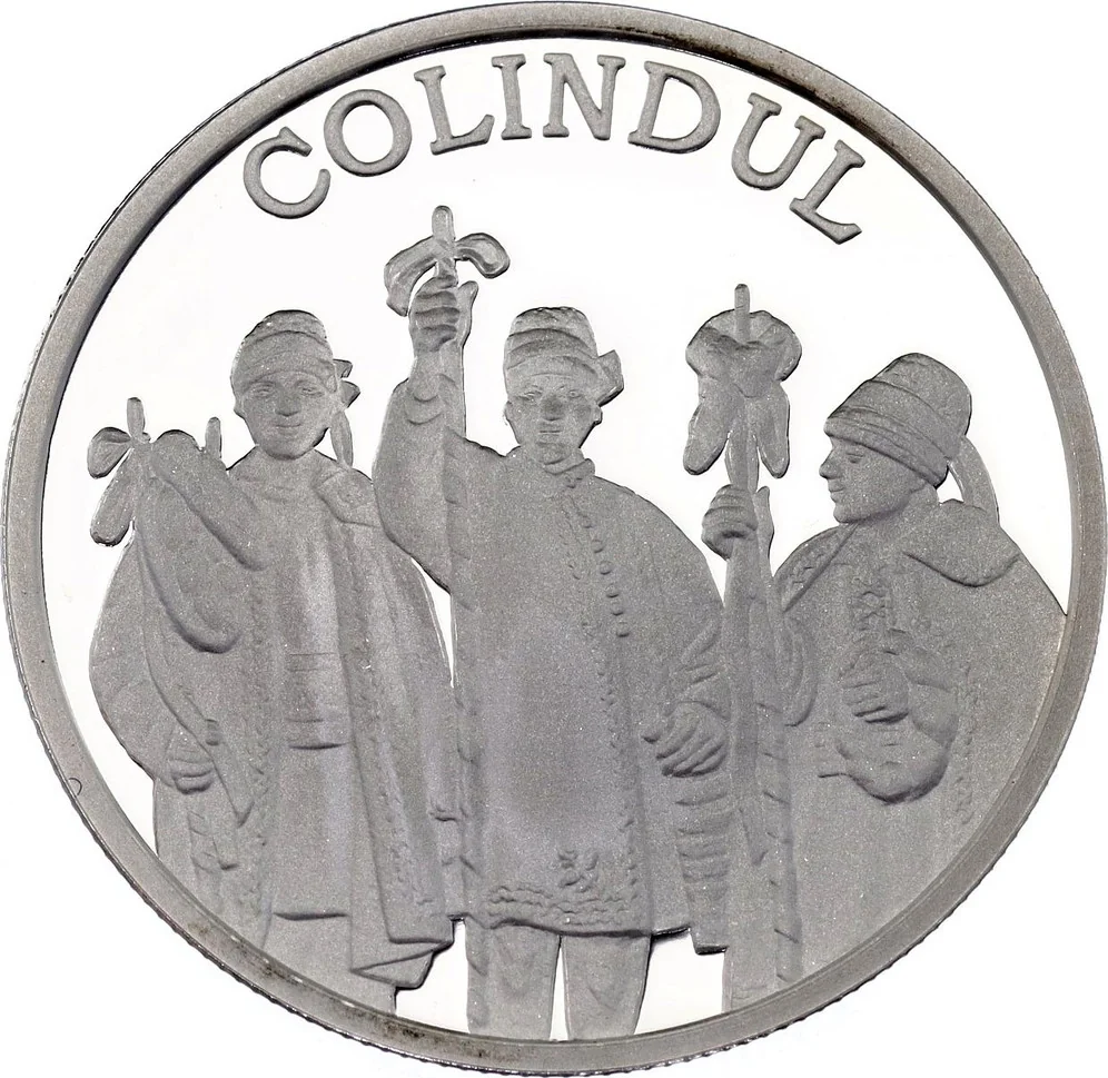 - Upper circumference: "COLINDUL" in block letters, meaning traditional Romanian Christmas carols.