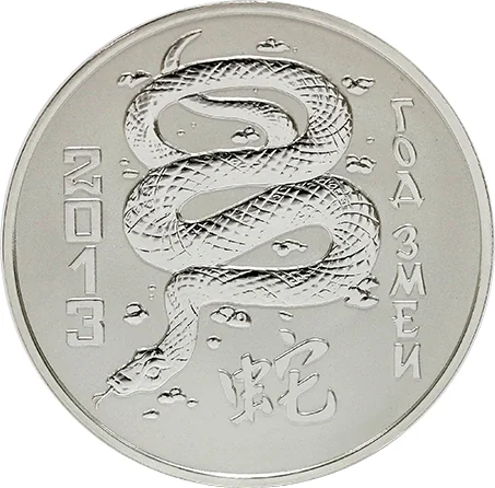 Central stylized snake for 2013; below, the Year symbol hieroglyph. Left: "2013". Right: "ГОД ЗМЕИ".