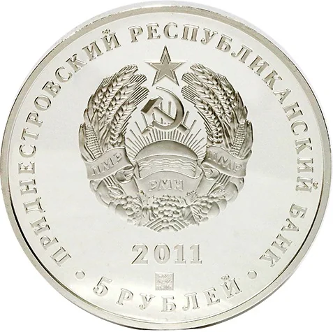 Center: State Emblem of the Transnistrian Moldovan Republic. Denomination and date.