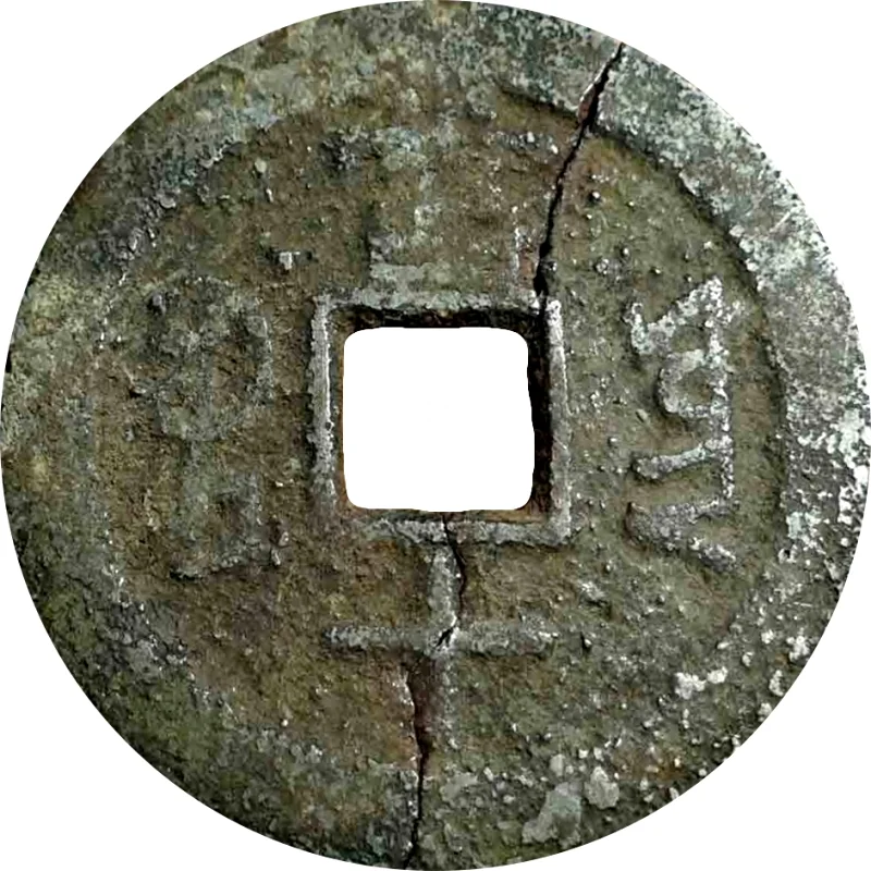 Two Manchu words flank a central hole, each with a Chinese character above and below.
