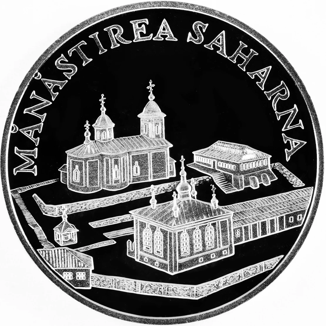 - Upper circumference: "MĂNĂSTIREA SAHARNA" in block letters.