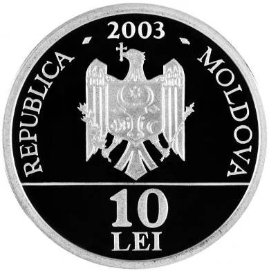 Description: On a lakeside plant background, a European mink holds a fish. Around the edge are the block letter inscriptions: "CARTEA ROŞIE", "NURCA EUROPEANĂ", "MUSTELA LUTREOLA".