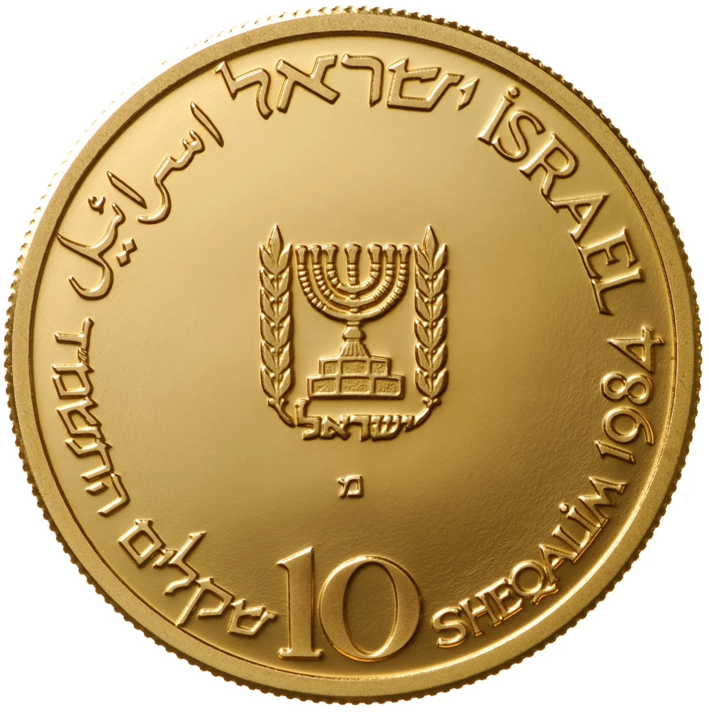 Israel's emblem, "Israel" in Hebrew, English, and Arabic, the year 5744-1983, and the face value.