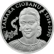 Center: Tamara Ciobanu's head against musical notes. Top arc: "TAMARA CIOBANU" in block letters. Bottom arc: life years "1914-1990".