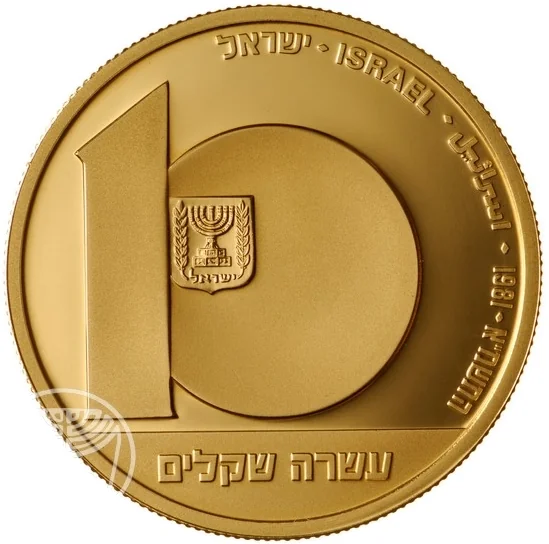 The face value features Israel's state emblem, "Israel" in Hebrew, Arabic, and English, and the mint year.