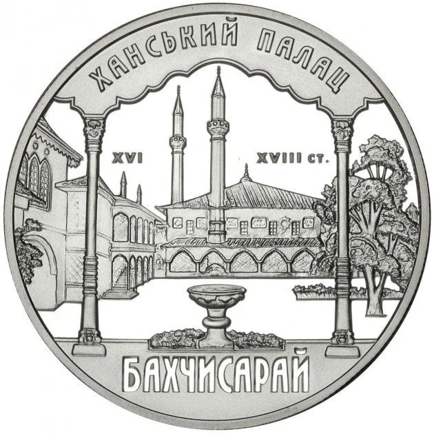 The inner court of the palace complex is shown, dated to the 16th–18th centuries, with the circular inscription "ХАНСЬКИЙ ПАЛАЦ" (Khan Palace) above and "БАХЧИСАРАЙ" (Bakhchysarai) below.