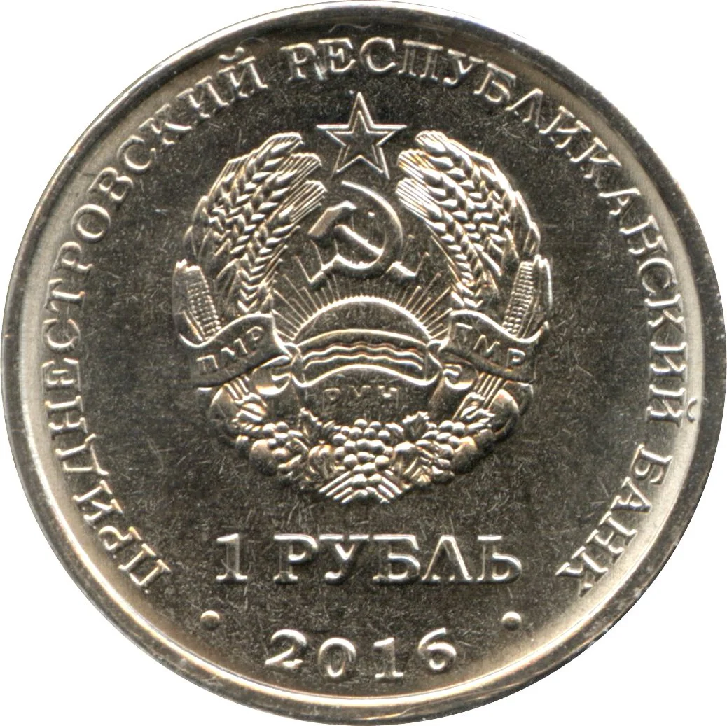 Transnistrian State Emblem, with denomination and date.