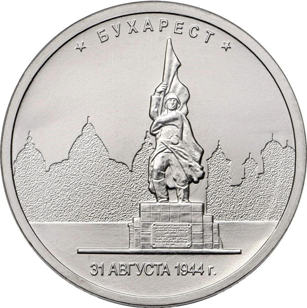 Monument relief of a soldier-liberator. Inscribed "БУХАРЕСТ" (BUCHAREST) with stars above, and "31 АВГУСТА 1944 г." (31 AUGUST 1944) below.