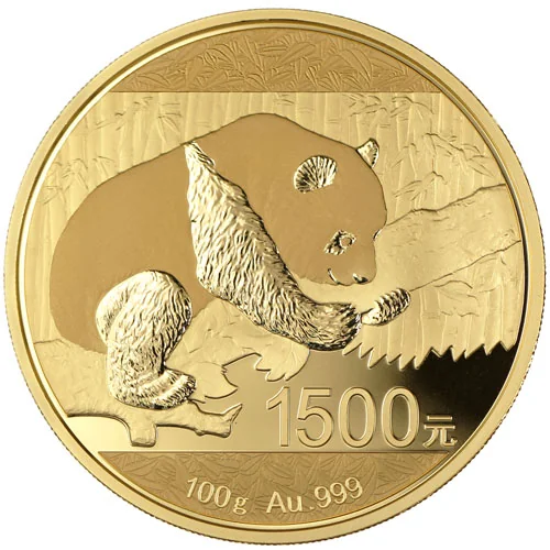 Panda on branch with weight, value, and fineness details.