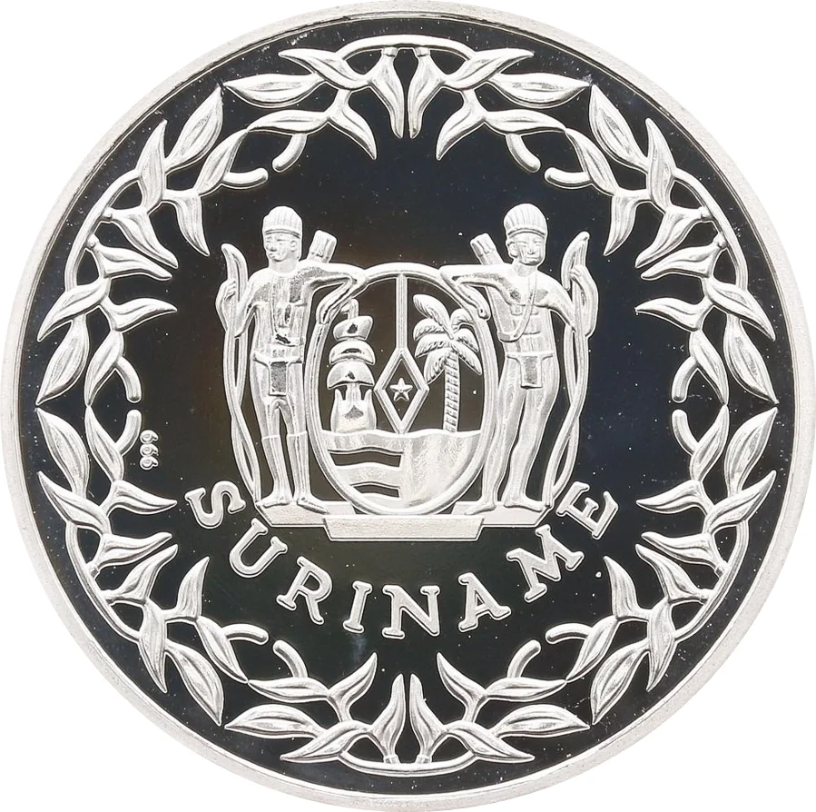 Coat of arms flanked by two natives, encircled by a wreath with a legend below.