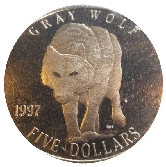 Gray wolf, left date, denomination below.