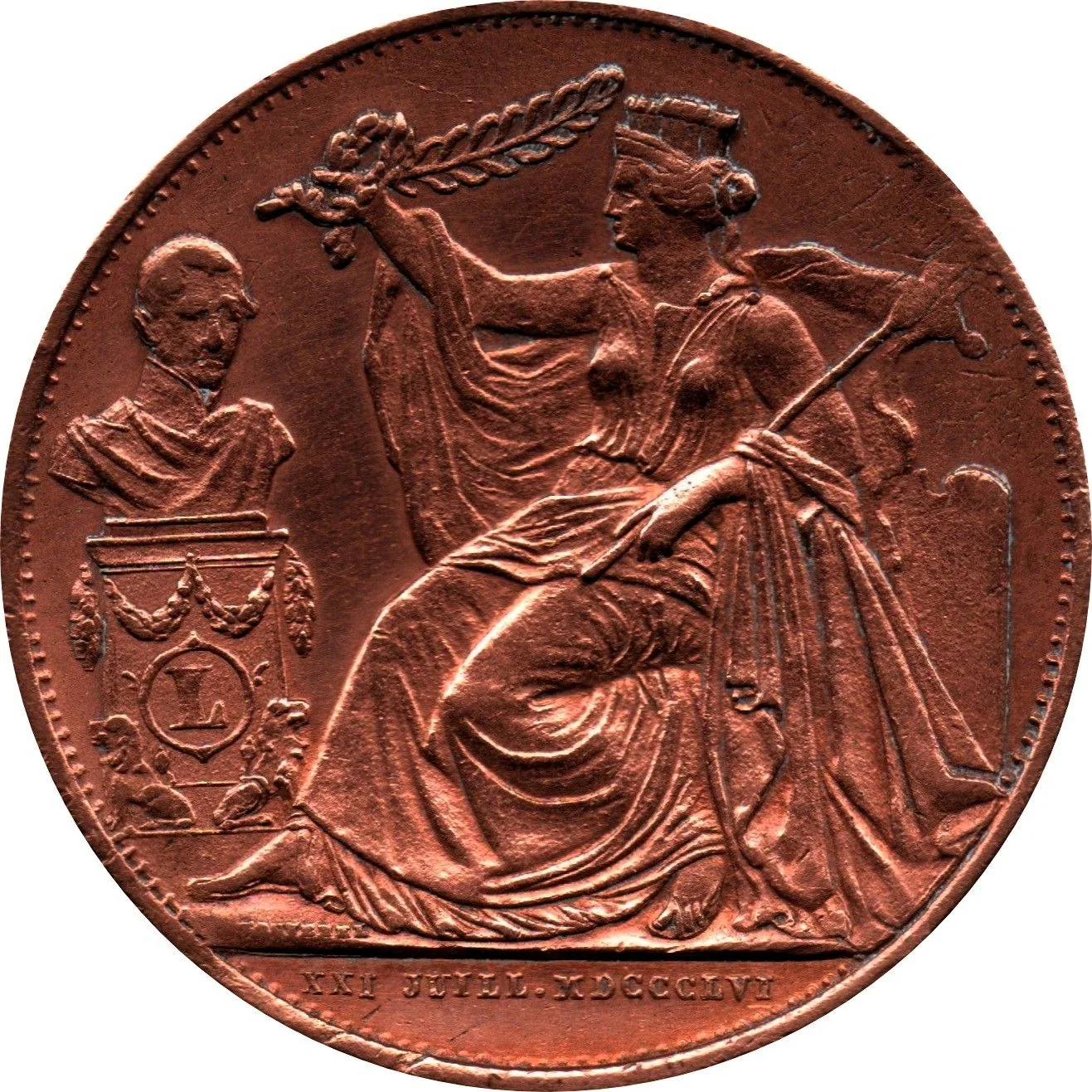 Allegory of Brussels with a bust of King Leopold I. Inauguration date in Latin below.