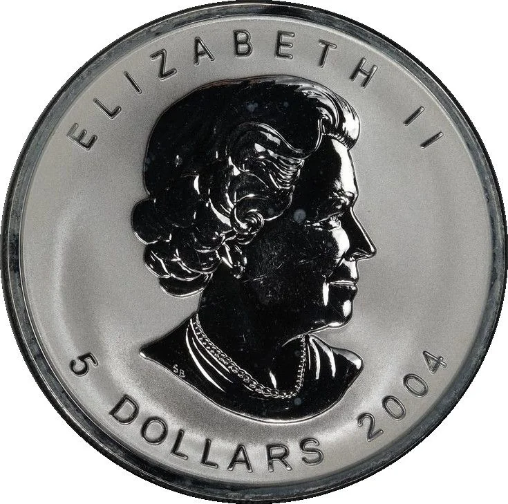 A silver maple leaf weighing one ounce.