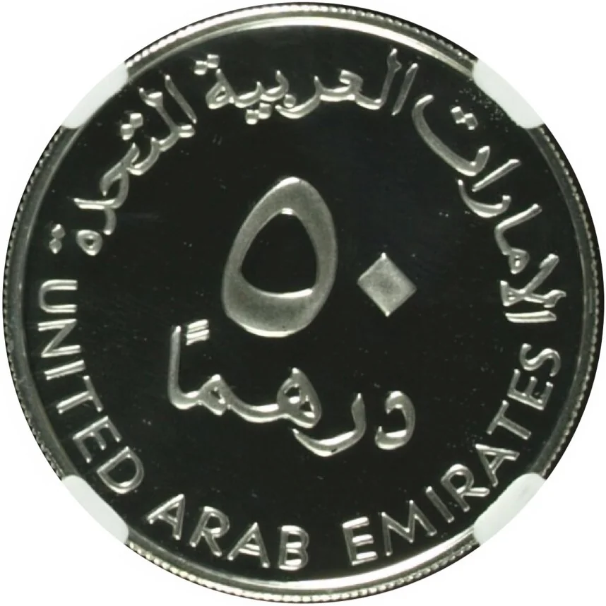 Description: Portrait bust of Sheikh Hamdan bin Rashid Al Maktoum, facing left.