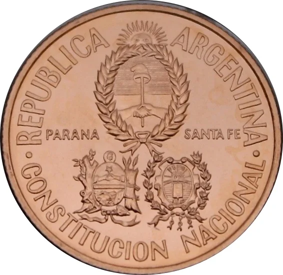 A central field with the shields of Paraná and Santa Fe below, encircled by "Argentina Republic" above and "National Constitution" below.