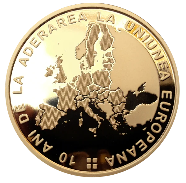 EU Member States highlighted the circular inscription “10 ANI DE LA ADERAREA LA UNIUNEA EUROPEANĂ”.