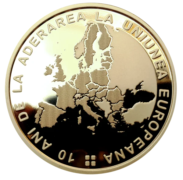 EU Member States highlighted the circular inscription “10 ANI DE LA ADERAREA LA UNIUNEA EUROPEANĂ”.