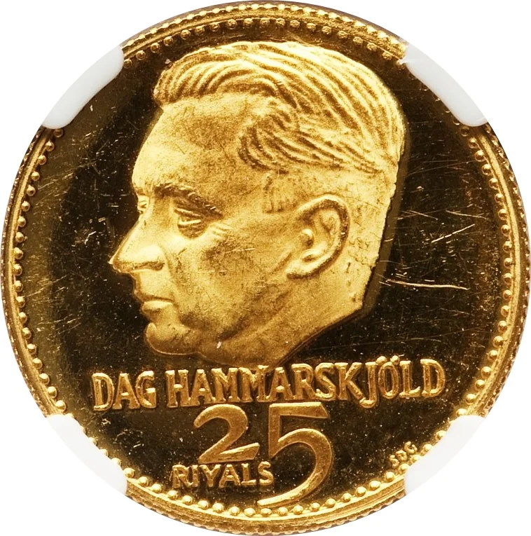 Dag Hammarskjöld facing left. "25 Riyals" below.