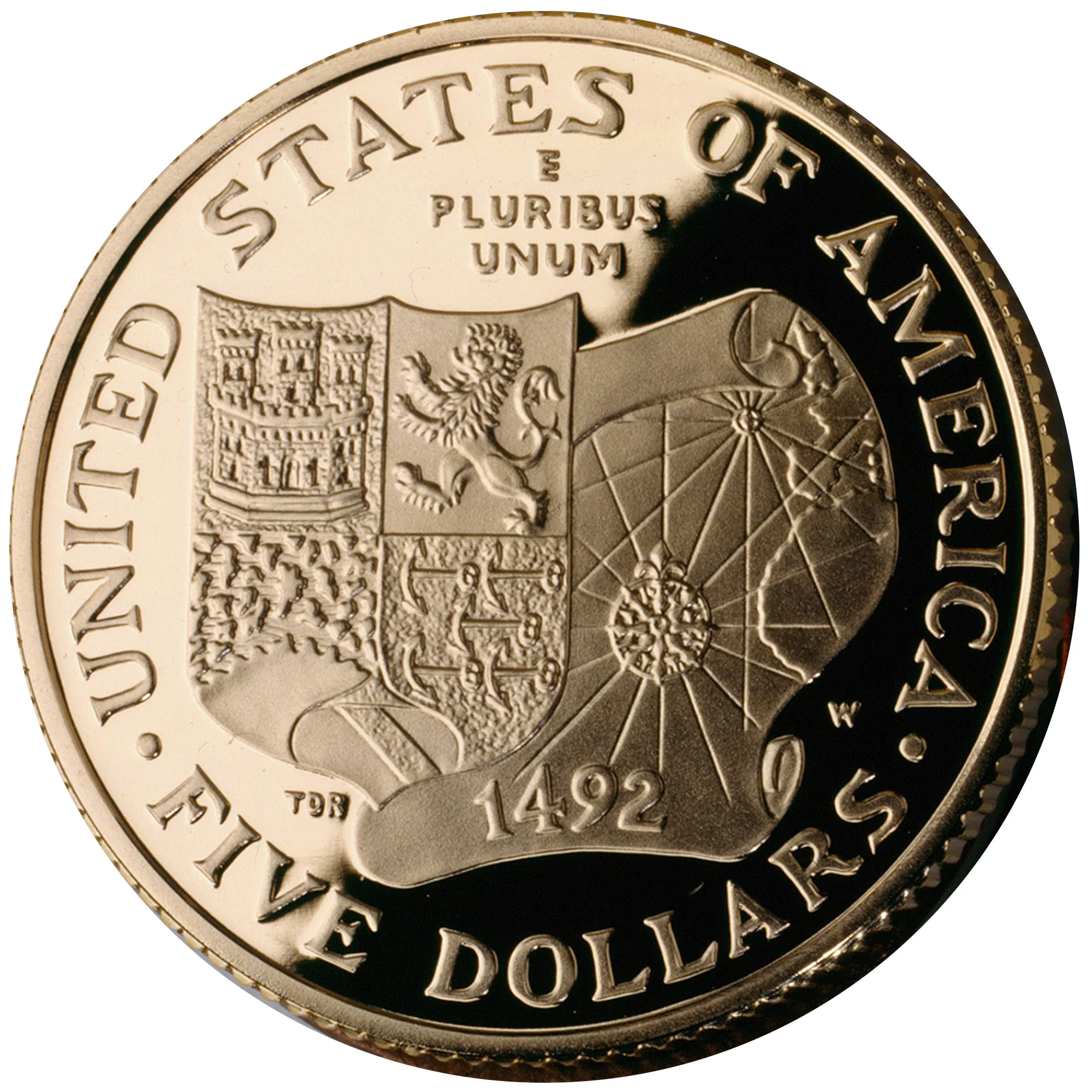 Columbus's crest as Admiral of the Oceans, overlaid on a 1492 map of the Old World.