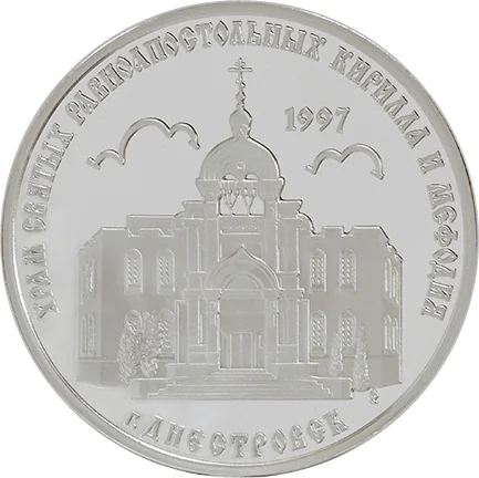 Description: Church of Saints Cyril and Methodius in Dnestrovsk, with the year 1997.