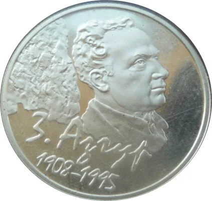 National crest, value, date, and bust on a stool with mirrored reflection.