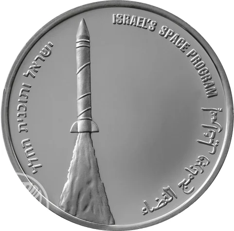 The "Shavit" rocket inscribed "ISRAEL'S SPACE PROGRAM" in Hebrew and English.