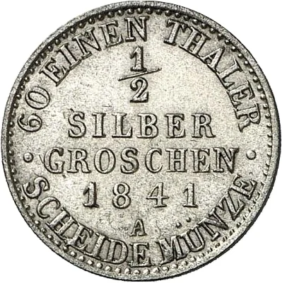 Inscription: 1/2 // SILBER // GROSCHEN // 1841 // A