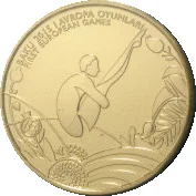 National Coat of Arms with crescent and left-side ornaments, denomination below.